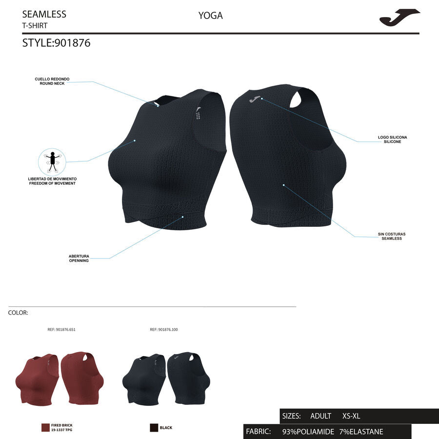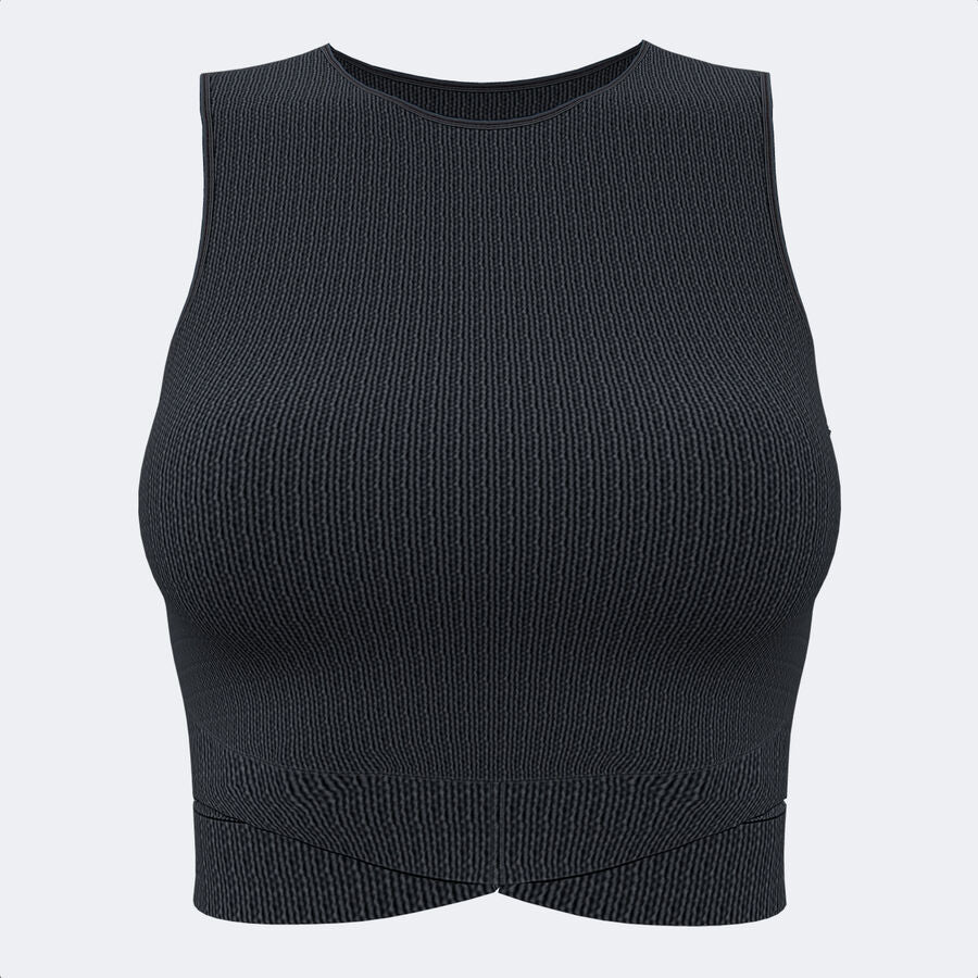 This sports bra incorporates wide straps and a round neck for greater freedom of movement. It has hardly any seams. Its seamless design provides unparalleled comfort. At the hem, it has openings that enhance ventilation of the sides, one of the places where sweat accumulates the most. It also adds an aesthetic touch.