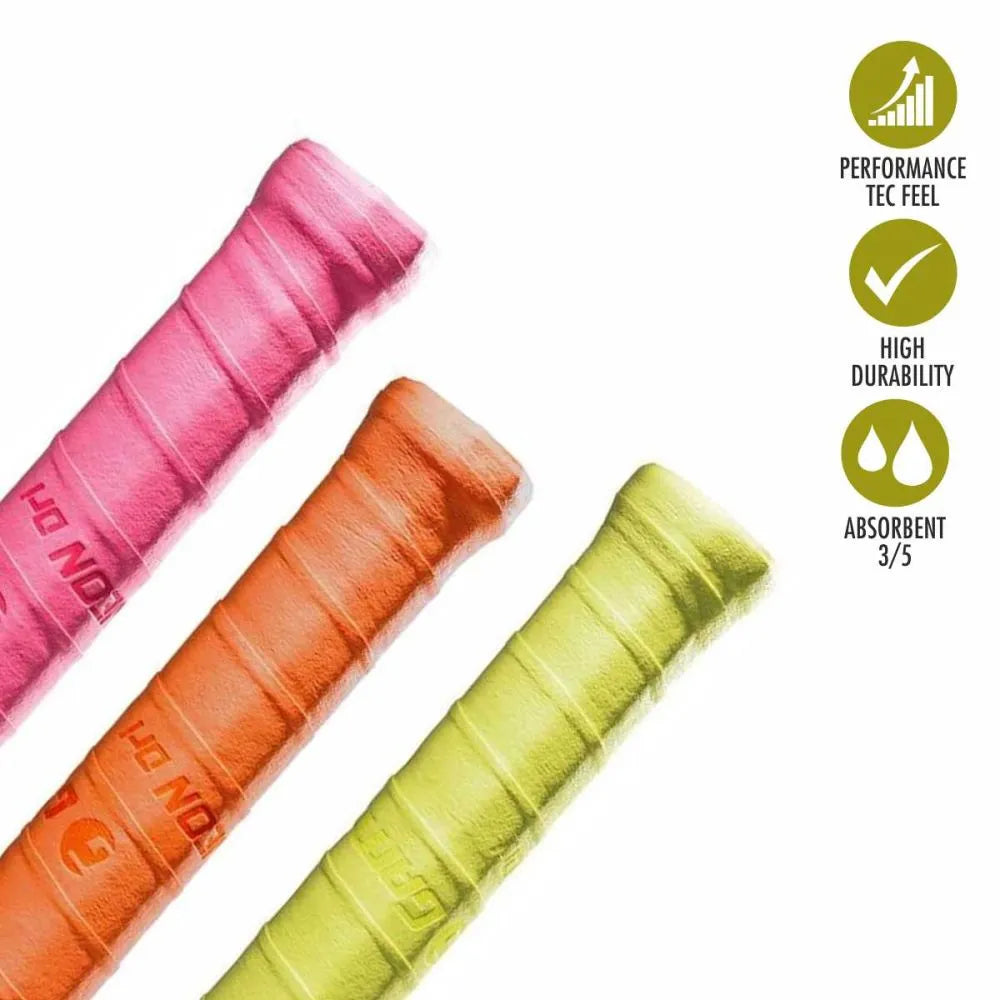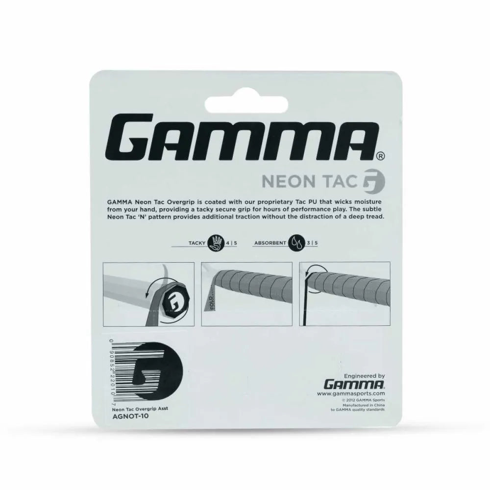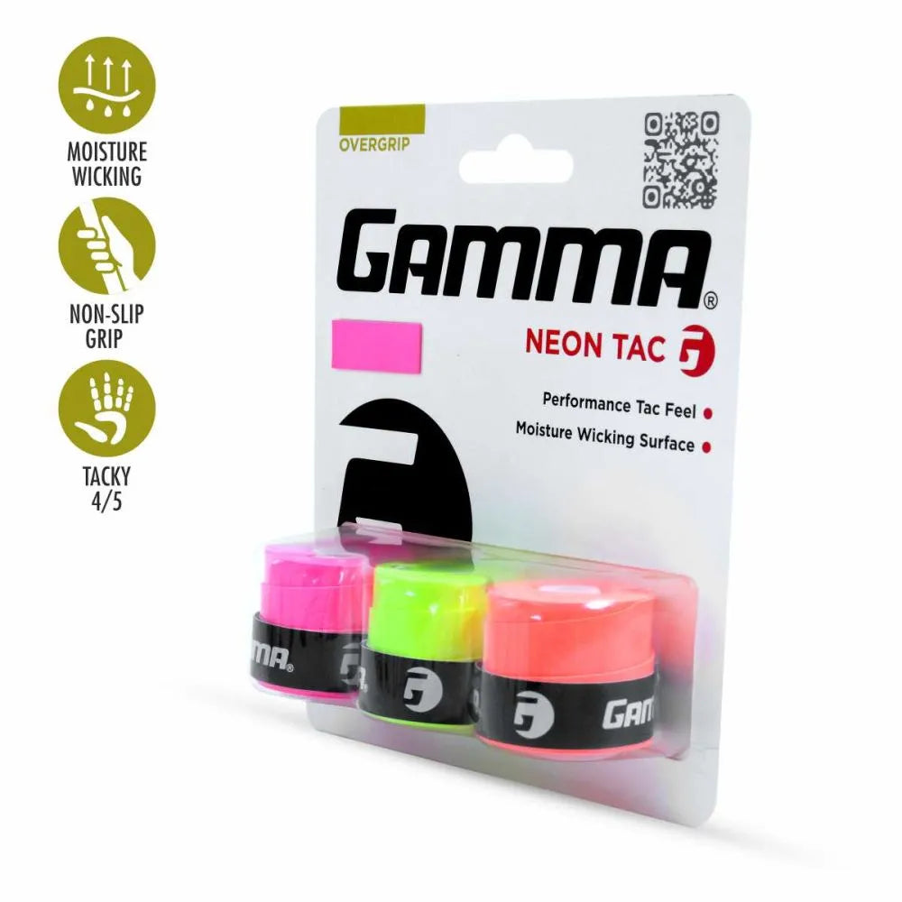 The GAMMA Neon Overgrips combine performance with bright neon colors to make a trendy performance statement on the court. Available in a variety pack of neon colors. A high tack overgrip featuring proprietary Tac PU that quickly wicks moisture and provides a secure grip on every shot.