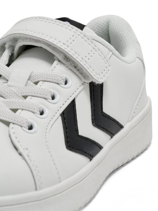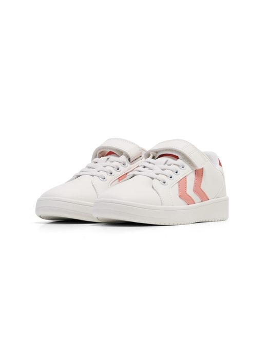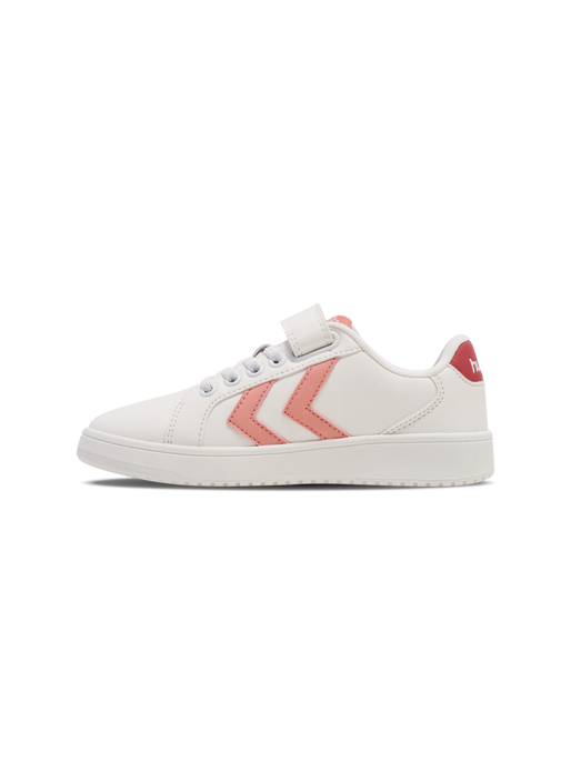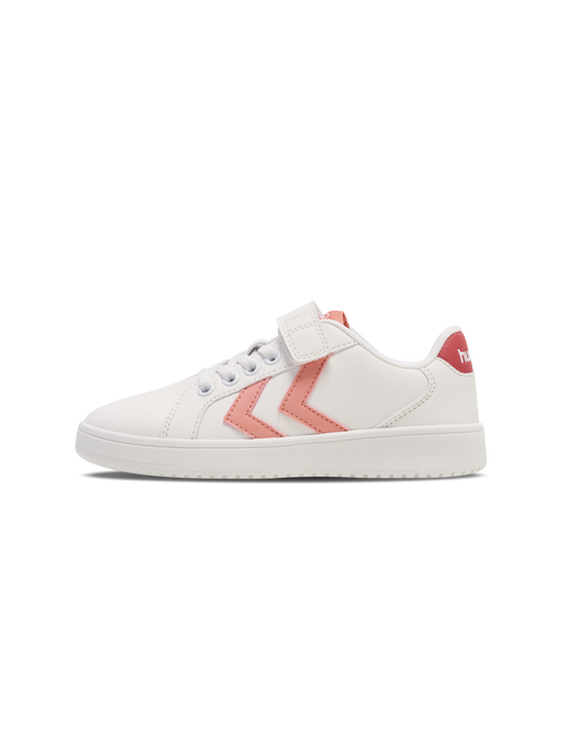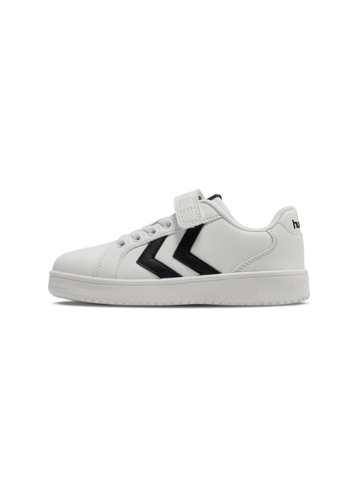 The DERBY COURT JR are classic court style sneakers with a derby cut in a lightweight design that are sure to be the envy of the playground. They have a durable PU upper construction alongside a TPR outsole, providing excellent grip on all surfaces. A cuttable Velcro strap and elasticated laces ensure these sneakers stay fitted. The design includes our signature chevrons.