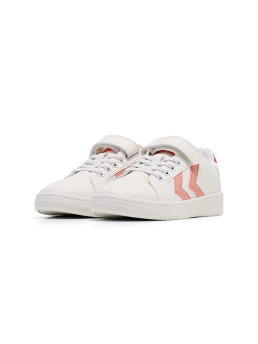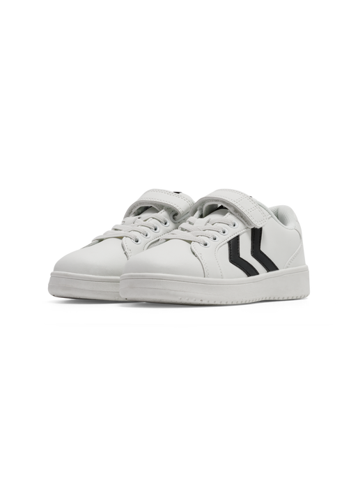 The DERBY COURT JR are classic court style sneakers with a derby cut in a lightweight design that are sure to be the envy of the playground. They have a durable PU upper construction alongside a TPR outsole, providing excellent grip on all surfaces. A cuttable Velcro strap and elasticated laces ensure these sneakers stay fitted. The design includes our signature chevrons.