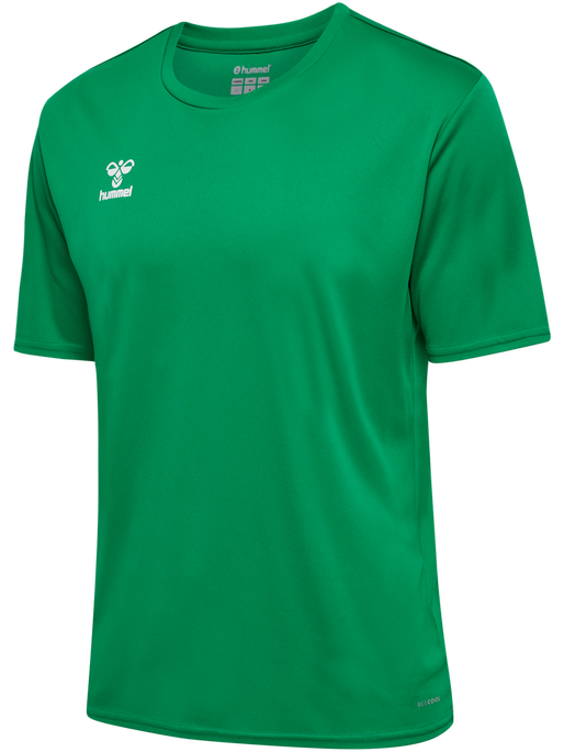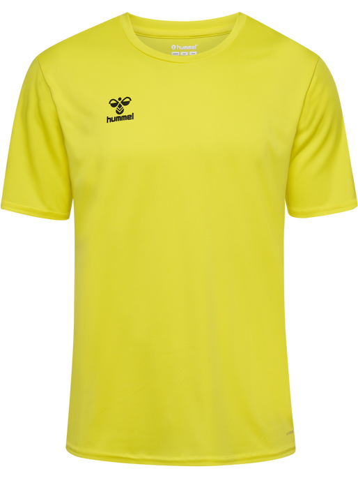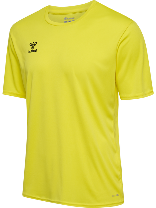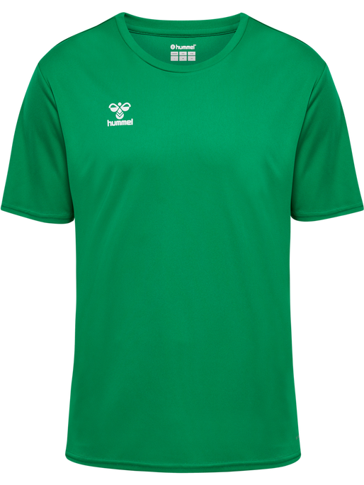 Made in flexible interlock fabric with a smooth surface, the hmlESSENTIAL JERSEY S/S features breathable BEECOOL® technology with quick dry properties. This classic hummel tee design has short sleeves and a crew neck. It comes in a regular fit and is made using recycled polyester, while the printed logo at the chest adds a nice contrast touch to the top.