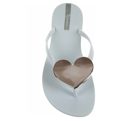 Flip flops with a maxi heart applied on the upper that will not make you go unnoticed. The thin straps and the delicate and romantic lines will give you an elegant look that is truly irresistible. Usually true to size: if you are unsure, go up one size. Made with Flexpand, 100% recyclable and Vegan material. The sole of the flip flop features the exclusive pattern of the sidewalk on Ipanema beach. The actual color may vary slightly due to the resolution of your device's screen. Made in Brazil.