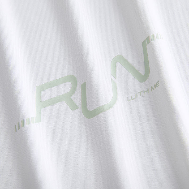 The main element of the design is a small stylish print on the chest with the motto RUN WITH ME. The laconic design and utilitarian gray color make this T-shirt a versatile element of your running wardrobe, which can be easily combined with various shorts, tights and sneakers.