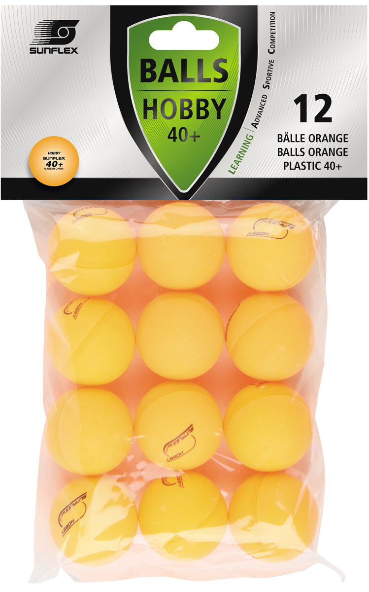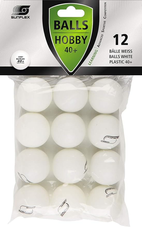 Improve your professional table tennis skills with the Sunflex Hobby Balls. This pack of Sunflex Hobby Balls includes a set of 12 plastic 40 plus balls for your table tennis training. These balls are made from the same material as ITTF approved balls to provide accurate results that are similar to how a professional table tennis balls would perform. These balls are approximately 4cm in diameter, and the material is non-flammable. The pack of 12 hobby balls provides players with enough balls for high intensity, fast training that can go uninterrupted by needing to gather the balls after just a few hits. This pack comes in two bright colors that are easy to see while training: white and orange. The Sunflex Hobby Balls do not always have to be for training. They can also be used to play a fun round of friendly table tennis with your friends and family. The Sunflex Hobby Balls pack will ensure that you have plenty of equipment for your fun family game night. Make sure you grab a bag of each color.