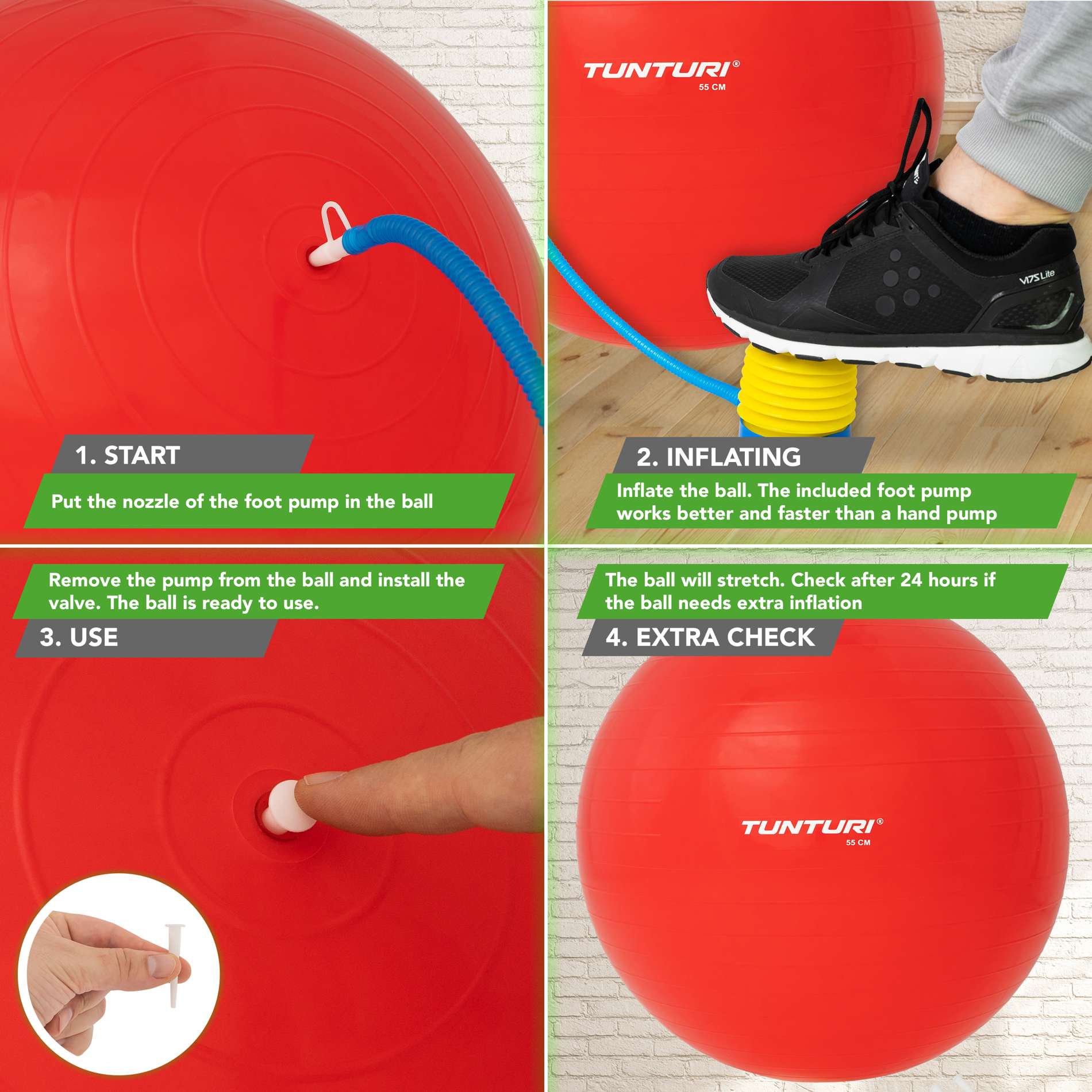 Sit comfortably? Improve your balance, coordination and strength? It's all possible with this inflatable Tunturi gymball. The gymball is suitable for a variety of fitness exercises for strengthening and stretching your muscles. The gymball is ideal for at home, but is also used in yoga schools, gyms and rehabilitation centers. In addition, you can also use the ball for sitting behind your desk or in front of the television. Because your body is being asked to find the right balance again and again, you unconsciously strengthen your muscles and improve your posture. The gymball is inflatable and you can pump it as much as you like.