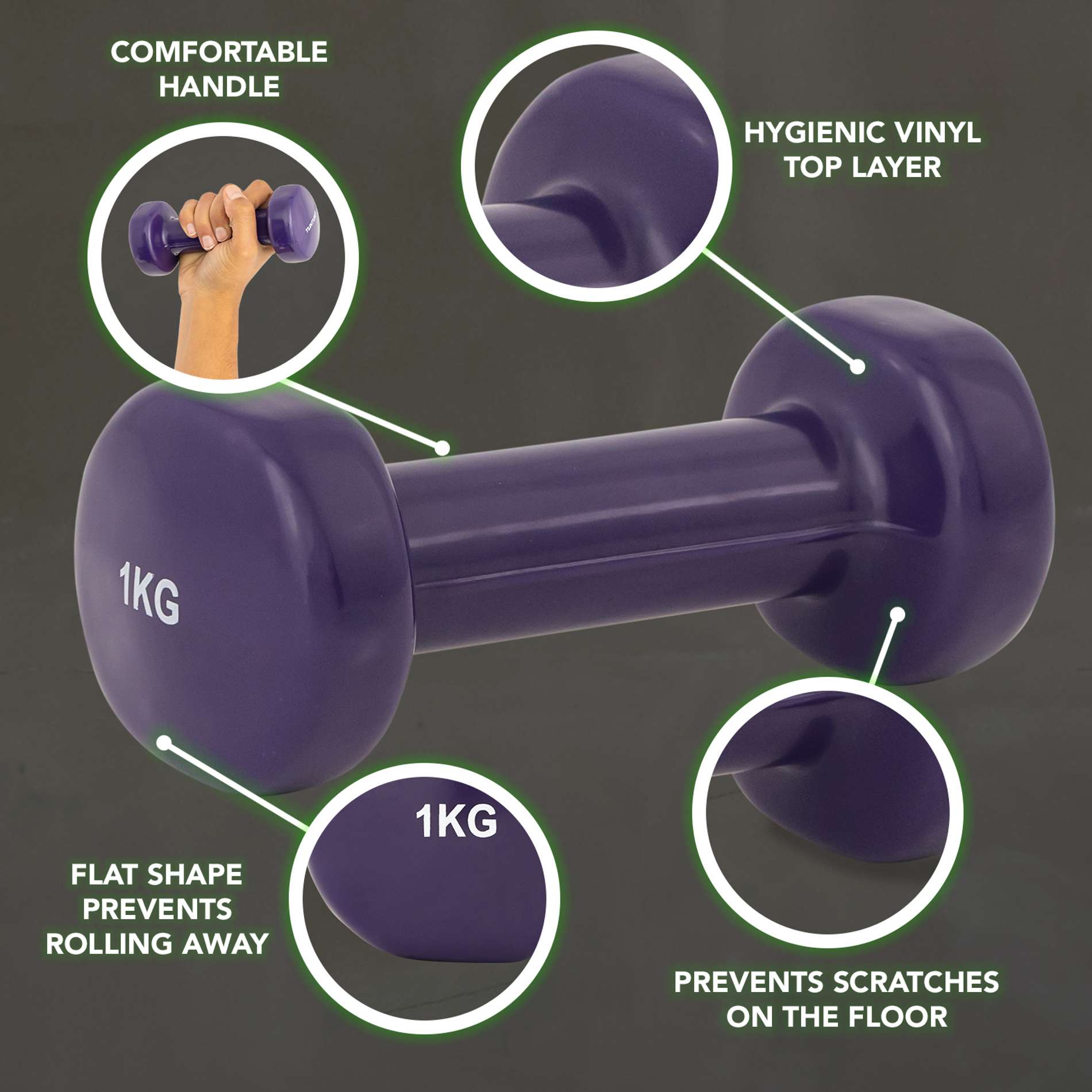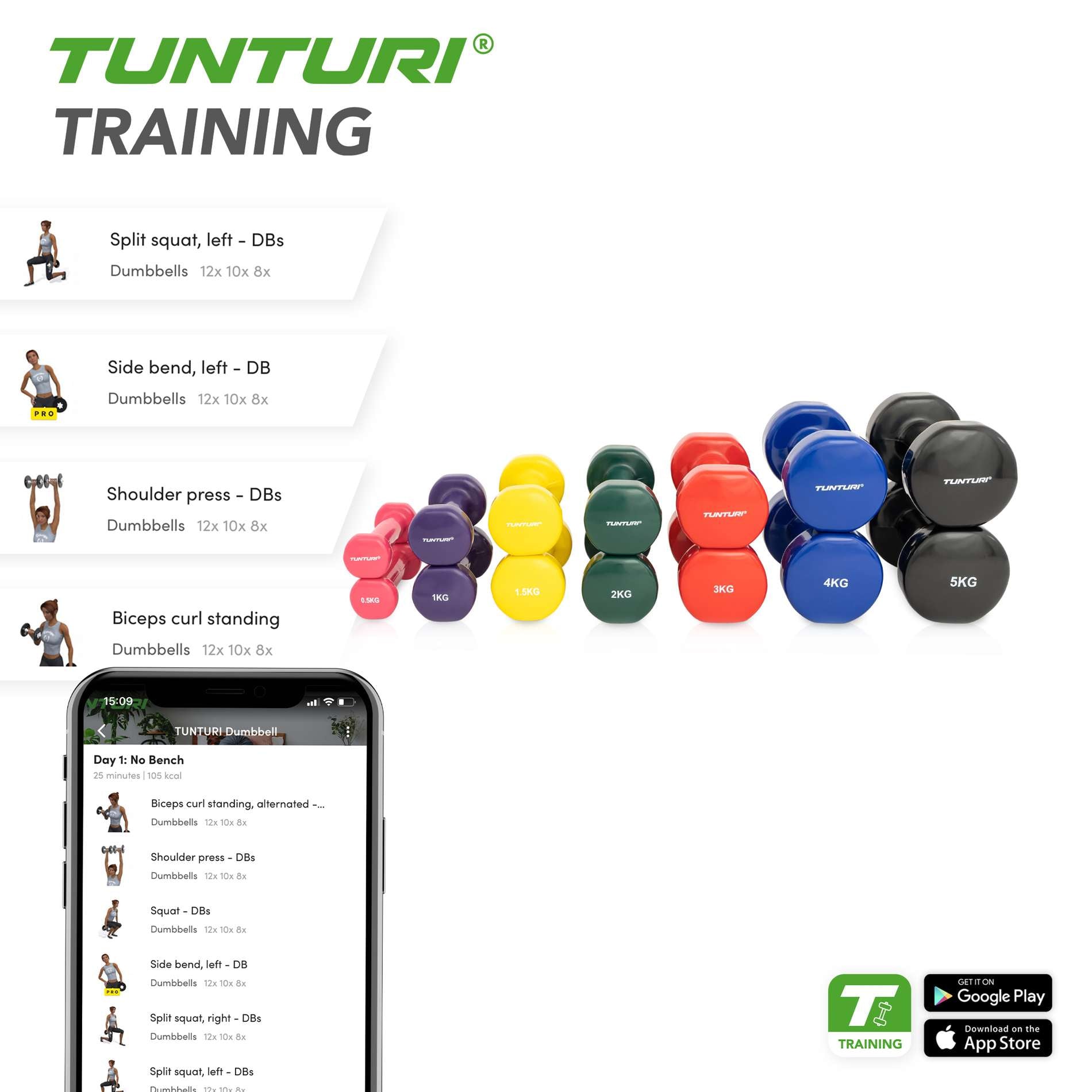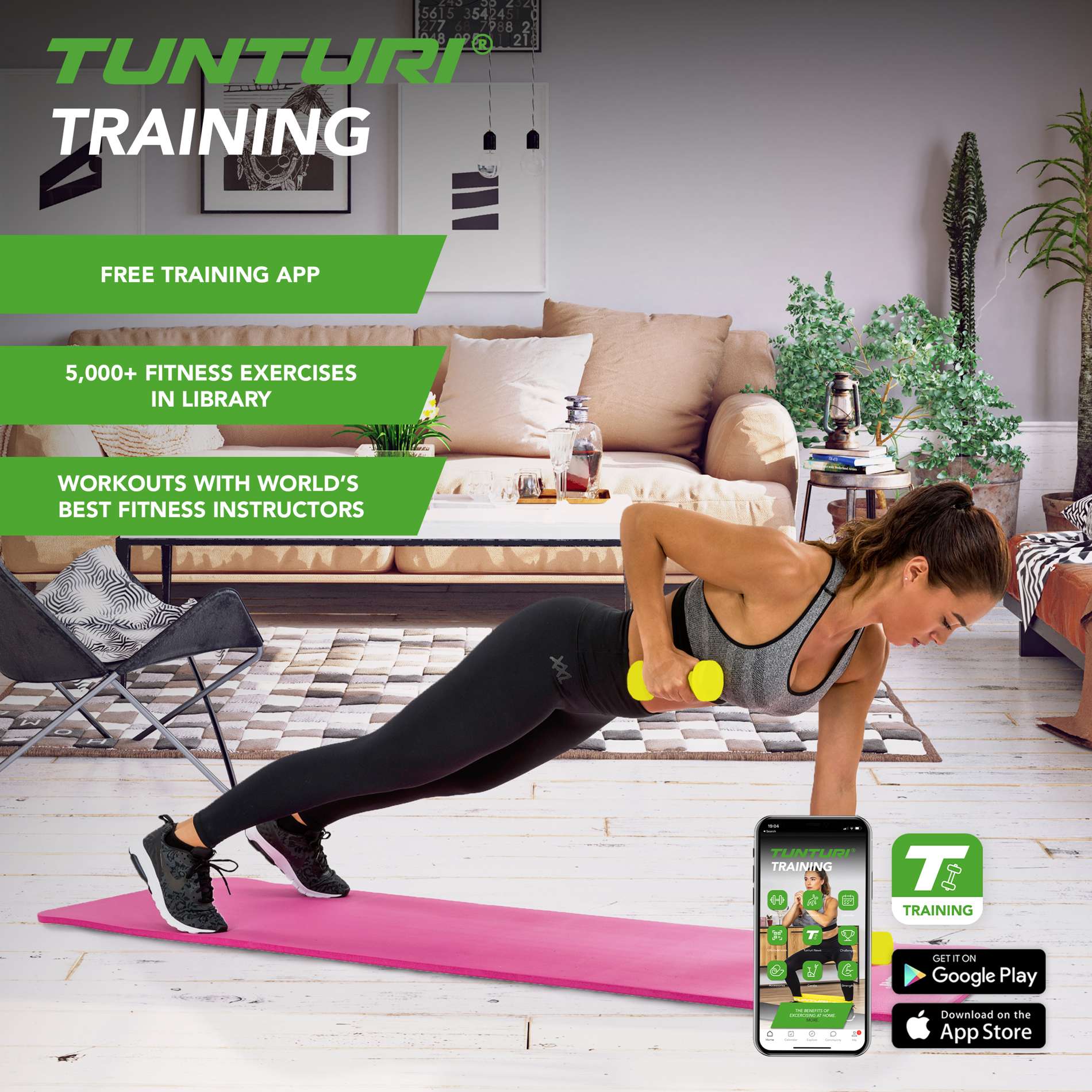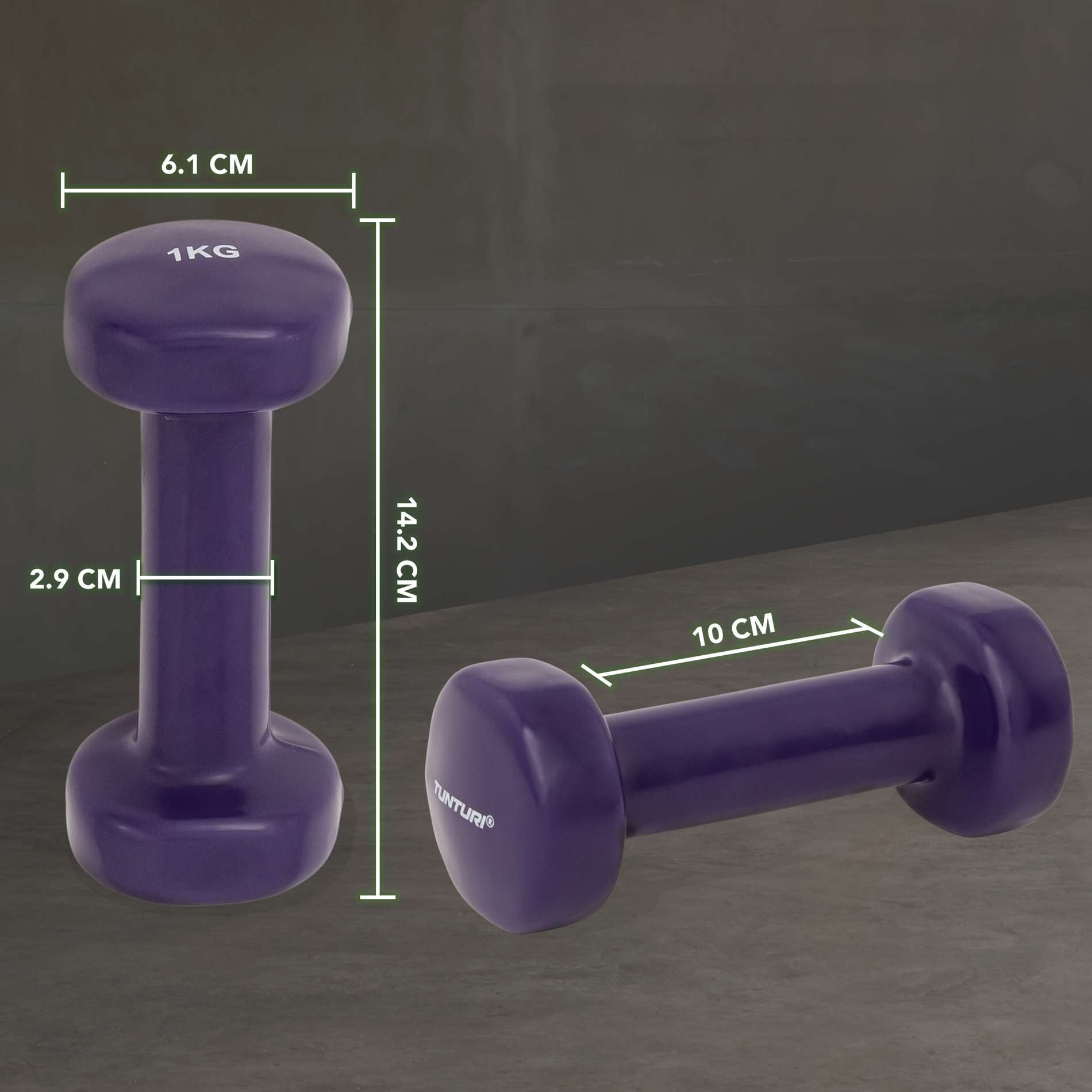 A workout doesn't have to be boring. You can easily make your workout simpler with this cheerful pink Tunturi Dumbbell set. Tune in and get started! This is a set of 2 dumbbells, weighing 1 kg. each. Ideal for all kinds of strengthening exercises for your arm and leg muscles, your abdominal muscles or the muscles in your shoulders and chest. The dumbbells fit pleasantly and firmly in the hand due to the top rubber layer. The rubber also ensures reduced noise during the workout and protects the metal.